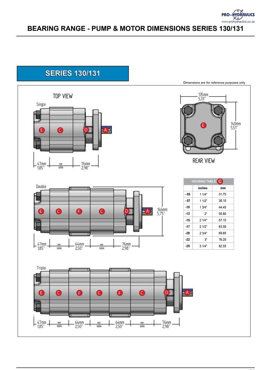 Pump & Motor Dimensions Series 130/131